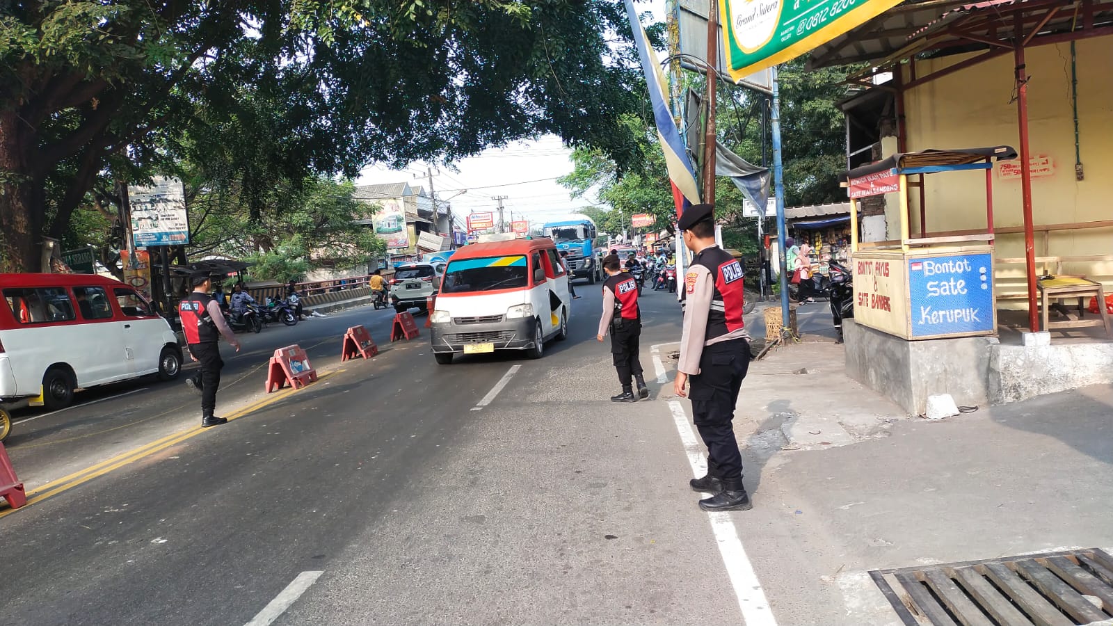 Personil Sat Samapta disebar di beberapa titik pertigaan maupun perempatan jalan di sepanjang jalur arteri Ciruas-Cikande, untuk melaksanakan pengaturan arus lalulintas dan penjagaan dalam rangka mengantisipasi terjadinya kemacetan arus lalulintas.