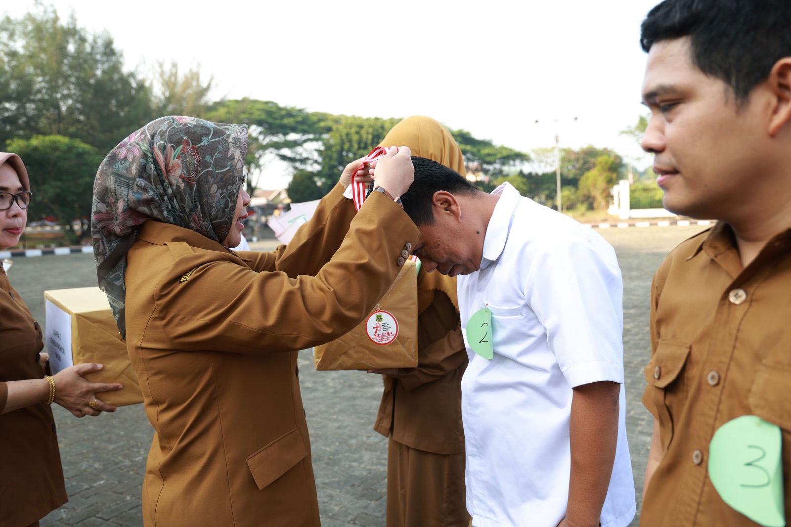 Seusai apel pagi dilaksanakan, Virgojanti menyerahkan sejumlah hadiah kepada para pemenang yang mengikuti serangkaian perlombaan dalam memperingati HUT Ke-78 Kemerdekaan RI di lingkungan Setda Provinsi Banten.