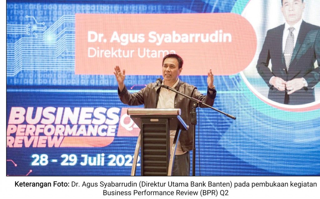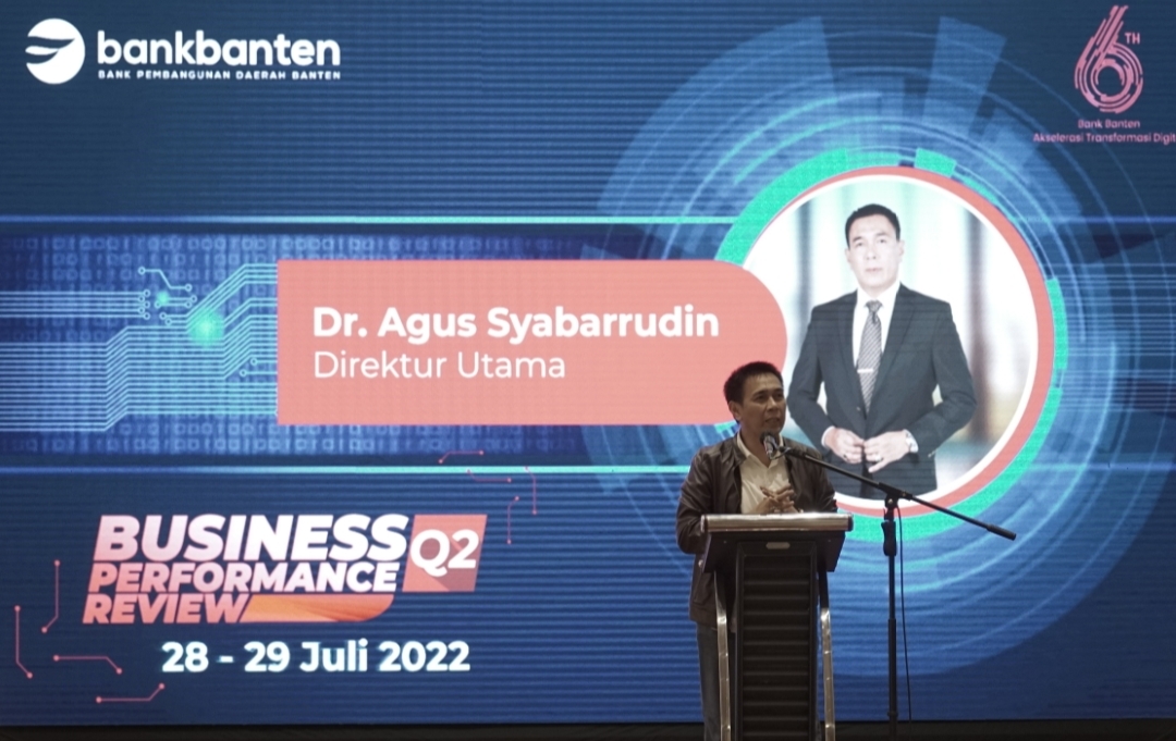 Direktur Utama Bank Banten, Dr. Agus Syabarrudin. Pada sambutannya, Agus memaparkan kinerja keuangan Bank Banten Semester I 2022 yang menunjukan performa positif dan tumbuh signifikan bila dibandingkan dengan tahun sebelumnya (YoY).