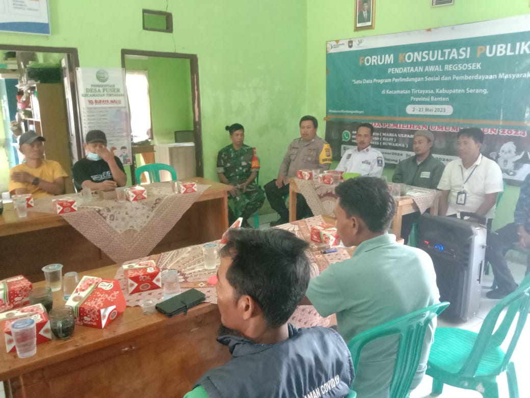 Serang, (persepsi.co.id) – Konsultasi Publik, pendataan awal Regsosek “Satu Data Program Perlindungan Sosial dan Pemberdayaan Masyarakat” oleh Badan Pusat Statistik (BPS) kabupaten Serang yang dilaksanakan di aula kantor desa Puser kecamatan Tirtayasa kabupaten Serang provinsi Banten. Rabu (17/05/2023) pukul 13:00 Wib.