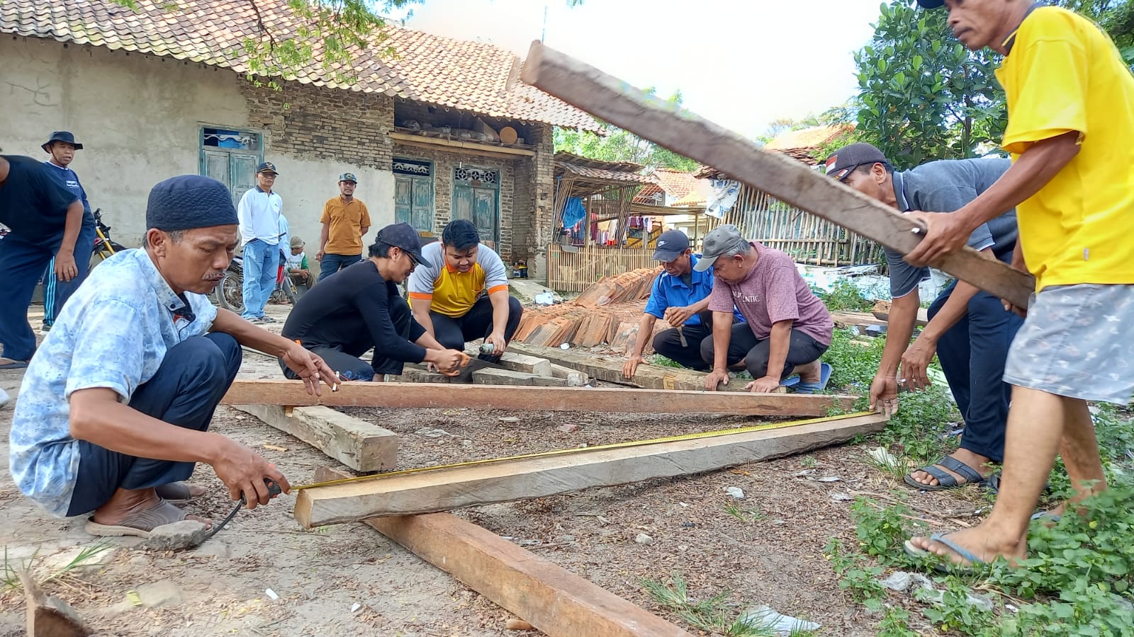 Briptu Rido Asep Setiawan sebagai Bhabinkamtibmas Desa Kepandean sambang sekaligus kerja bhakti membangun Pos Kamling dengan warga kampung Priman desa Kepandean kecamatan Ciruas Kabupaten Serang.