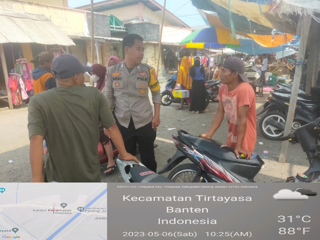 Tirtayasa, (persepsi.co.id) – Polsek Tirtayasa. Bhabinkamtibmas (Bhayangkara pembina keamanan dan ketertiban masyarakat) Desa Tirtayasa Bripka Humaedi laksanakan giat Sambang ke pasar Tradisional Desa. Sabtu (06-05-2023)
