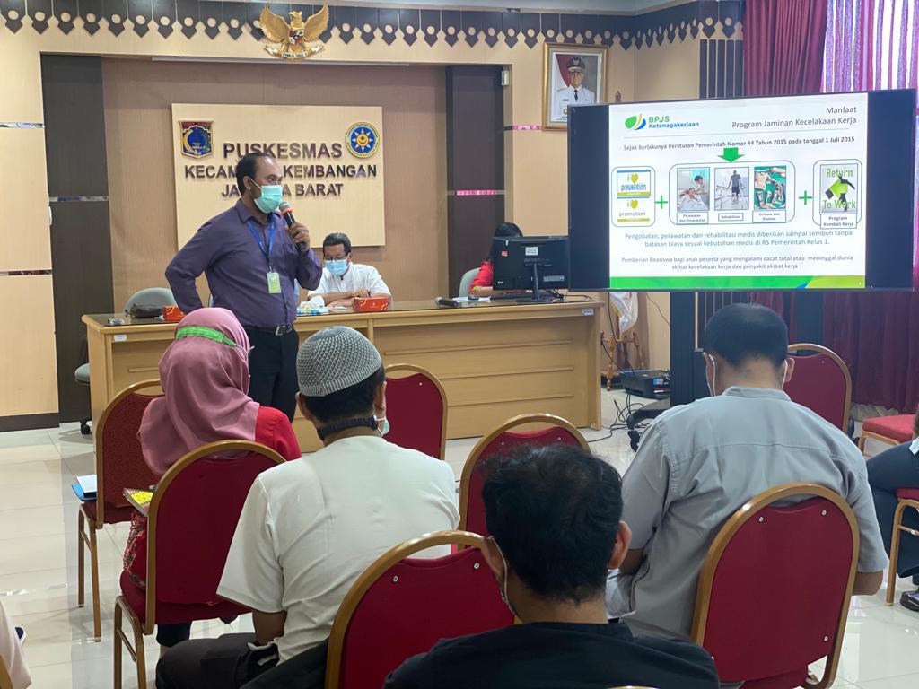 Kepala Kantor Cabang BPJS Ketenagakerjaan Tangerang Batuceper Alpian menjelaskan ini merupakan bentuk kami dalam hal memberikan pemahaman atas program BPJS Ketenagakerjaan terlebih puskesmas Kecamatan Kembangan telah menjadi Puskesmas PLKK (Pusat Layanan Kecelakaan Kerja) BPJS Ketenagakerjaan.
