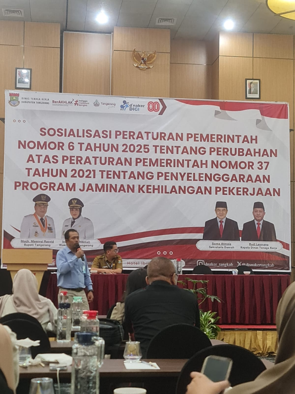 Diketahui, sosialisasi Peraturan Pemerintah Nomor 6 Tahun 2025 tentang Perubahan atas PP Nomor 37 Tahun 2021 mengenai Penyelenggaraan Program Jaminan Kehilangan Pekerjaan (JKP) ini dilaksanakan di Hotel Ibis Gading Serpong pada Selasa 29 Juli 2025.
