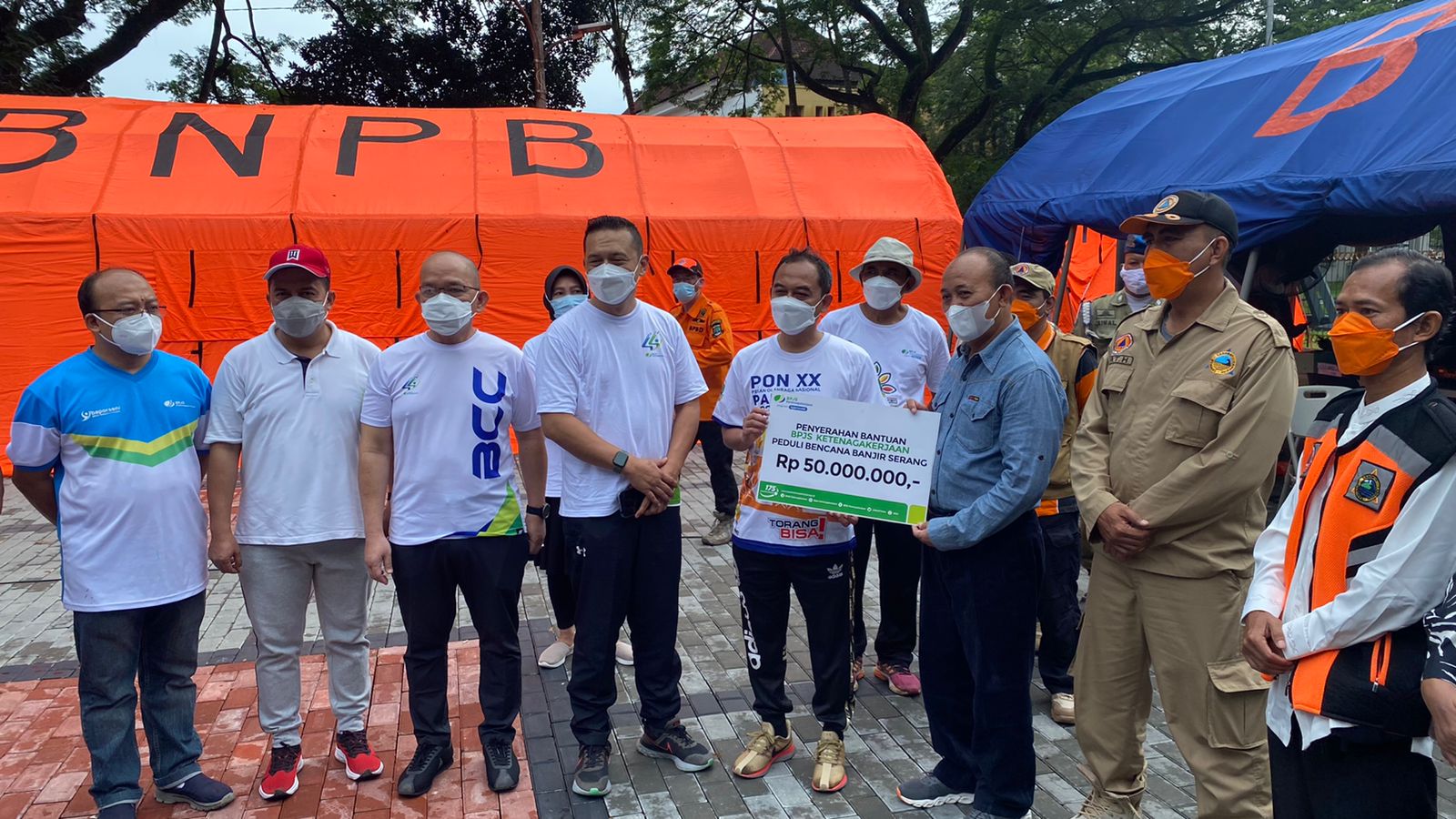 Turut hadir dalam penyerahan bantuan korban banjir tersebut ialah Direktur Umum dan SDM BPJS Ketenagakerjaan Abdur Rahman Irsyadi, Direktur Keuangan BPJS Ketenagakerjaan Asep Rahmat Suwandha, Deputi Direktur Wilayah BPJS Ketenagakerjaan Kanwil Banten Yasaruddin dan Kepala BPBD Kota Serang Diat Hermawan.