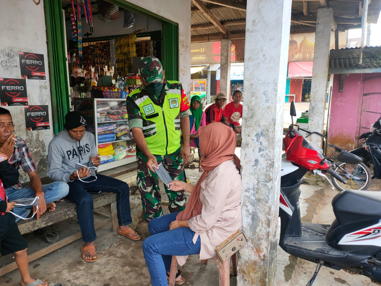 Seperti yang dilakukan oleh seorang anggota Koramil 0115/Cimanggu Kodim 0601/Pandeglang Sertu M. Daulay, terus melakukan Komunikasi sosial dengan warga sekaligus memberikan himbauan kepada untuk tetap menjalankan protokol kesehatan ditengan wabah covid-19 seperti sekarang ini.