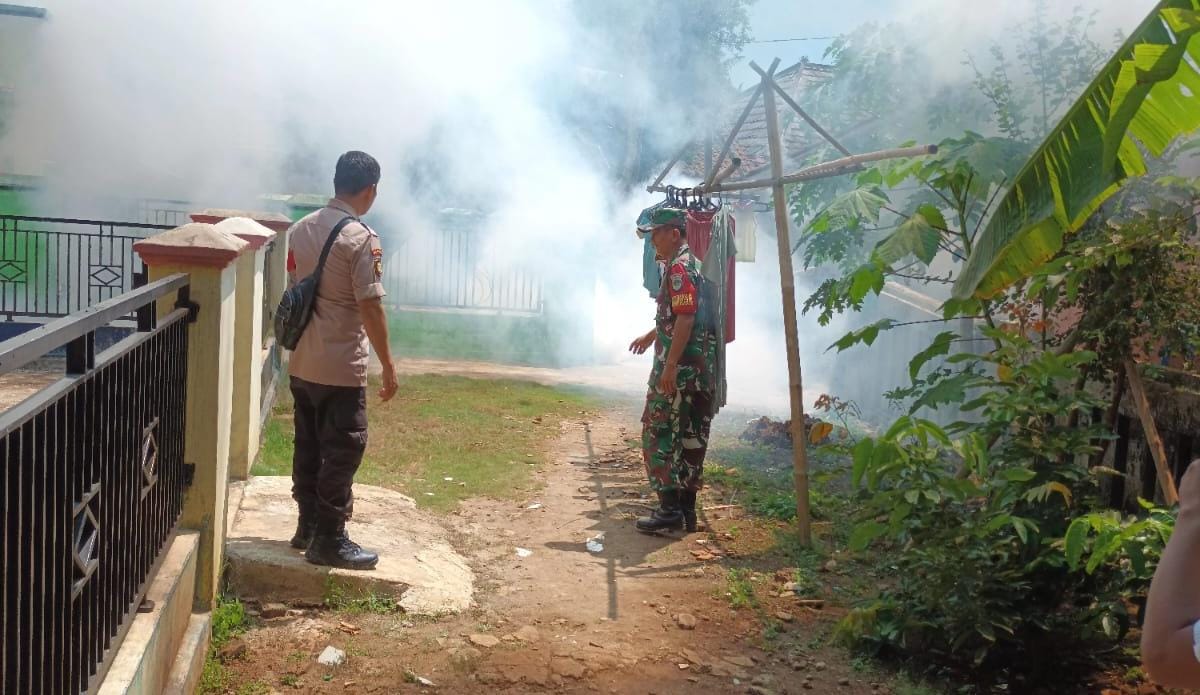 Pandeglang, (persepsi.co.id) – Untuk mencegah penularan kasus demam berdarah, anggota Koramil 0111/Pagelaran bersama petugas kesehatan Puskesmas Pagelaran melakukan kegiatan fogging di pemukiman warga.Kamis (21/12/23)