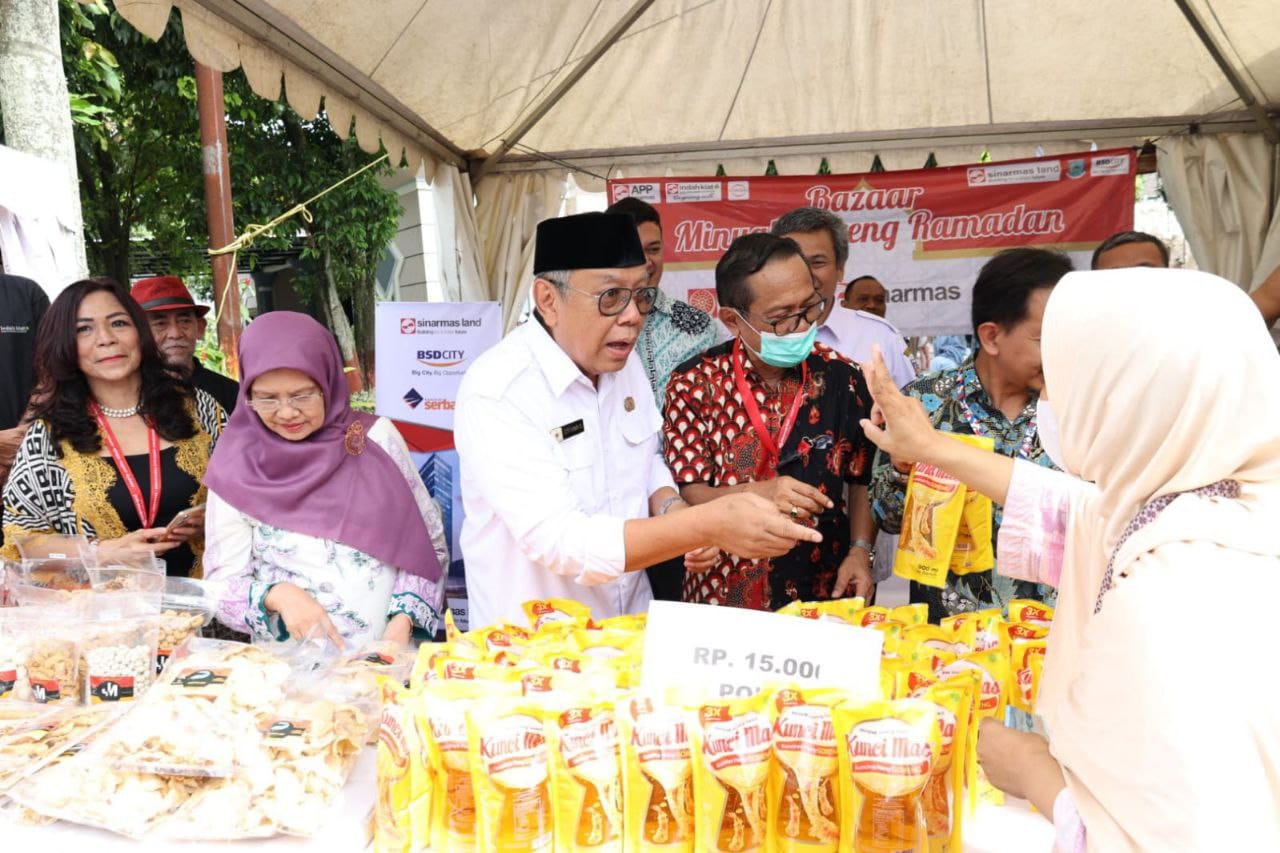 Wali Kota Benyamin Davnie berkesempatan membuka bazar ramadan di Kecamatan Pondok Aren, pada Rabu (12/04).