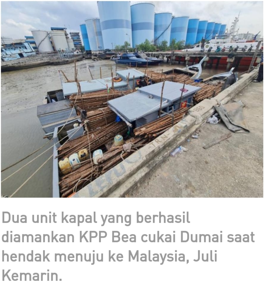 DUMAI, (persepsi.co.id) – Sabtu (22/7/2023), berawal dari informasi masyarakat adanya pergerakan dua unit kapal motor menuju Port Klang, Malaysia, memuat barang tanpa disertai dokumen