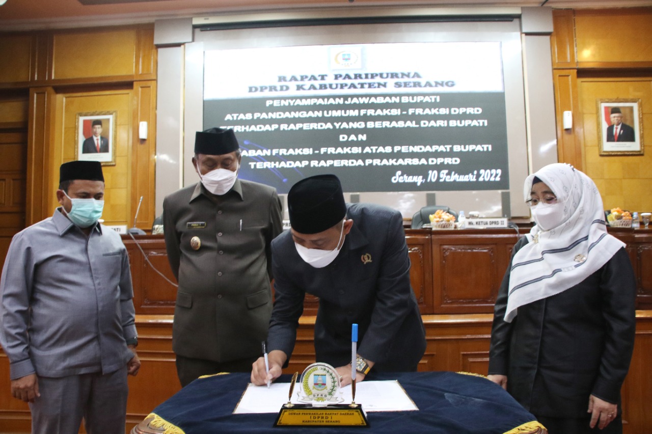 Sebelumnya Pemkab Serang juga mendukung atas dua Rancangan peraturan daerah (Raperda) tentang desa wisata dan pendanaan penyelenggaraan pendidikan pesantren Prakarsa DPRD. Diharapkan, dua raperda tersebut bisa menjadi payung hukum dalam menentukan arah dan kebijakan bagi pemerintah daerah.