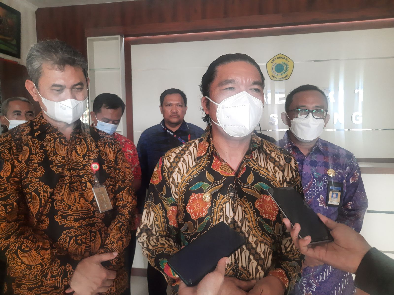 Penjabat (Pj) Gubernur Banten Al Muktabar didampingi Kepada Dinas Pendidikan dan Kebudayaan (Disdikbud) Provinsi Banten Tabrani memimpin Rapat Persiapan Penerimaan Peserta Didik Baru (PPDB) Tahun 2022 bersama puluhan operator tingkat SMA di Aula SMKN 1 Kota Serang, Jl. KH Abdul Fatah Hasan No.88, Cipare, Kec. Serang, Kota Serang, Kamis (19/5/2022).