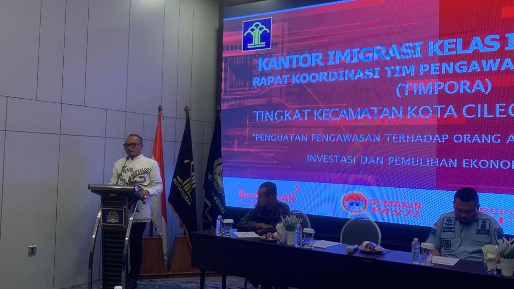 Dalam sambutannya, Kepala Divisi Keimigrasian Kanwil Kemenkumham Banten Ujo Sujoto melalui Kepala Sub Bidang Intelijen Keimigrasian Kantor Wilayah Kemenkumham Banten Arfa Yudha Indriawan mengapresiasi atas dilaksanakannya rapat koordinasi Tim Pengawasan Orang Asing (TIMPORA) tingkat Kecamatan Kota Cilegon tersebut. “Terimakasih saya ucapkan atas kehadiran teman-teman dalam rapat koordinasi TIMPORA tingkat Kecamatan Kota Cilegon. Semoga rapat ini dapat meningkatkan pengawasan orang asing yang ada di Kota Cilegon,” katanya.