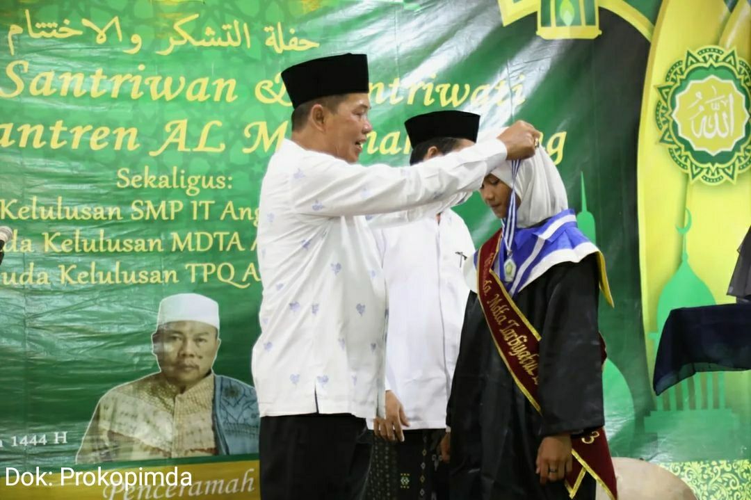 “Saya ucapkan selamat kepada anak-anak kita yang sudah lulus dan jangan bosan untuk melanjutkan pendidikan yang lebih tinggi, insyaAllah anak-anak kita ini akhlaknya mulia” Ucapnya.