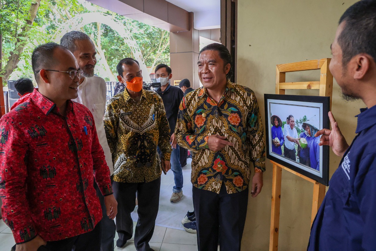 Al Muktabar juga sempat melihat-lihat beberapa bingkai foto yang dipamerkan terkait dengan kerja jurnalis yang melakukan peliputan di lingkungan Pemprov Banten. Dalam beberapa frame foto yang dipamerkan, ia juga berdiskusi dengan para fotografer akan makna dari foto tersebut.