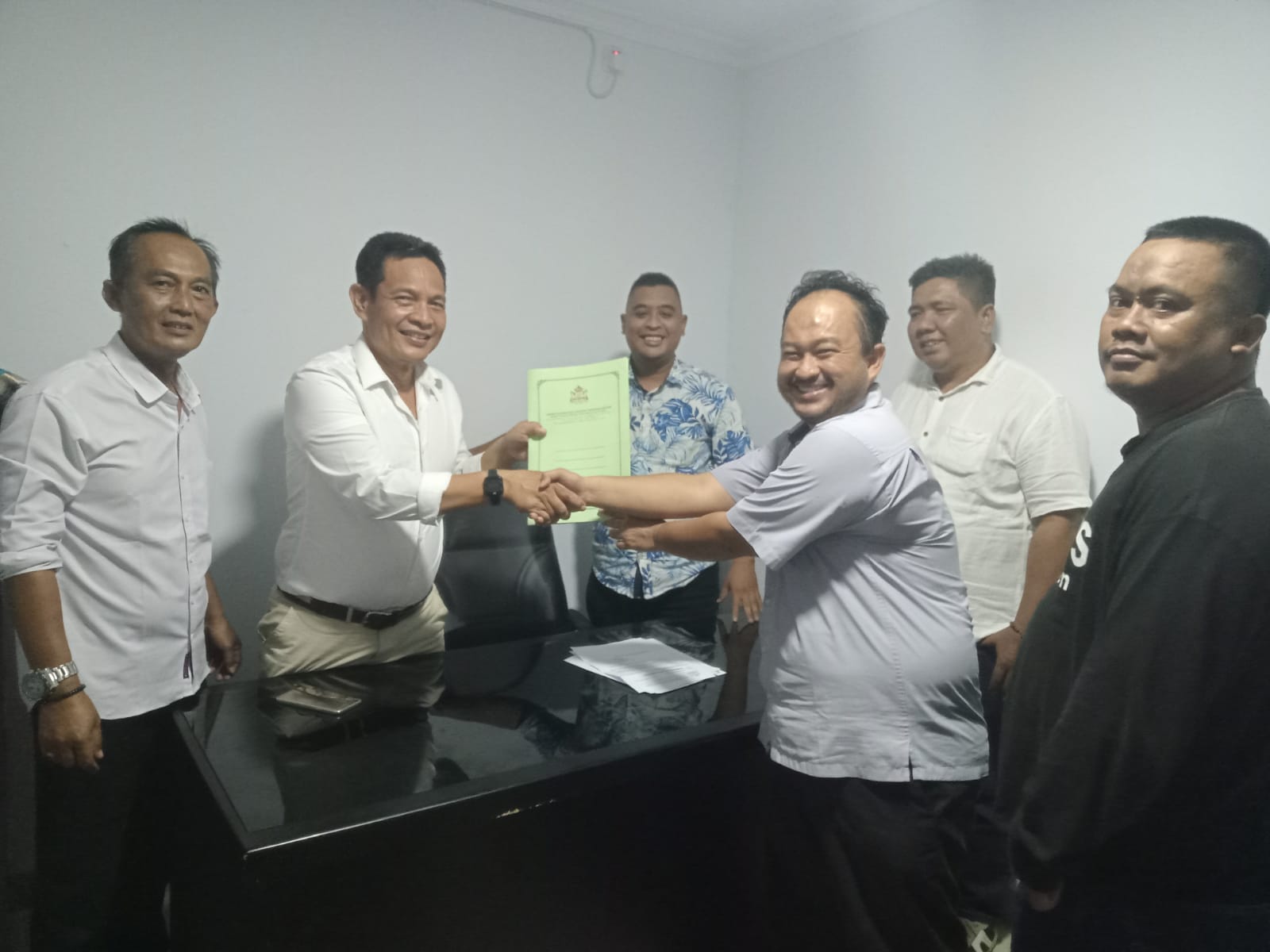 Ibnu didampingi para kerabatnya resmi memgembalikan formulir pendaftaran kepada Steering Comittee (SC) Musyawarah Kota (Mukot) IV, Dada Fatoni di Sekretariat KADIN Kota Serang Jalan Syekh Nawawi Al Bantani Perumahan Prime Point Kecamatan Curug Kota Serang pada Senin, 13 Maret sore.