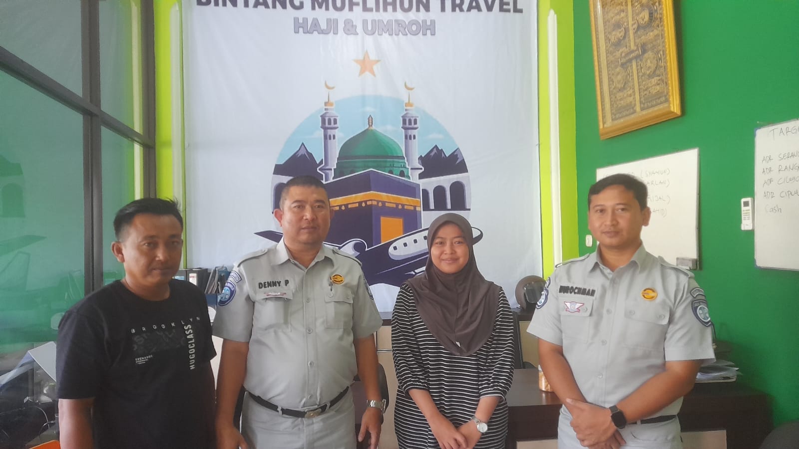Cikande, (Persepsi.co.id) – Petugas Jasa Raharja Samsat Cikande Nurochman dan Denny Pribadi disambut dengan baik oleh pada saat melakukan kunjungan ke kantor Travel Umroh dan Haji Bintang Muflihun yang berada di wilayah Ciruas, Jumat (21/06/2024).