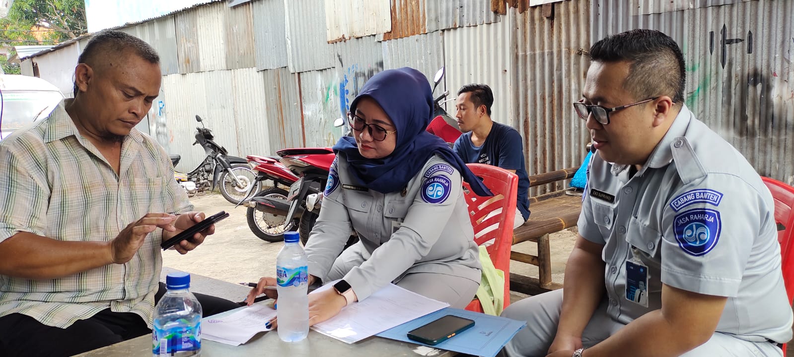 Tangerang, (Persepsi.co.id) – Salah satu bentuk dari Pelaksanaan Undang – Undang Nomor 33 Tahun 1964 tentang Dana Pertanggungan Wajib Kecelakaan Penumpang, Petugas Jasa Raharja Samsat Ciledug Eko Supriyadi bersama Andini melakukan giat Intensifikasi Penagihan IWKBU (Iuran Wajib Kendaraan Bermotor Umum) ke Koperasi Jasa Berlian Karya Abadi yang beralamat di Jalan Masjid No. 49 Sudimara Timur Ciledug.