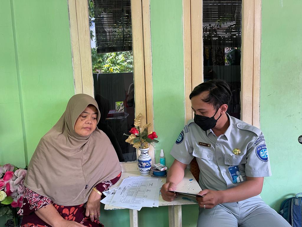 Deni M Resta, Petugas mobile service KPJR Tigaraksa setelah mendapatkan informasi tersebut langsung bergegas untuk melaksanakan survey ahli waris ke tempat kediaman korban yang beralamat di Kp. Kiara RT 05/06 Kec. Balaraja Kab. Tangerang.