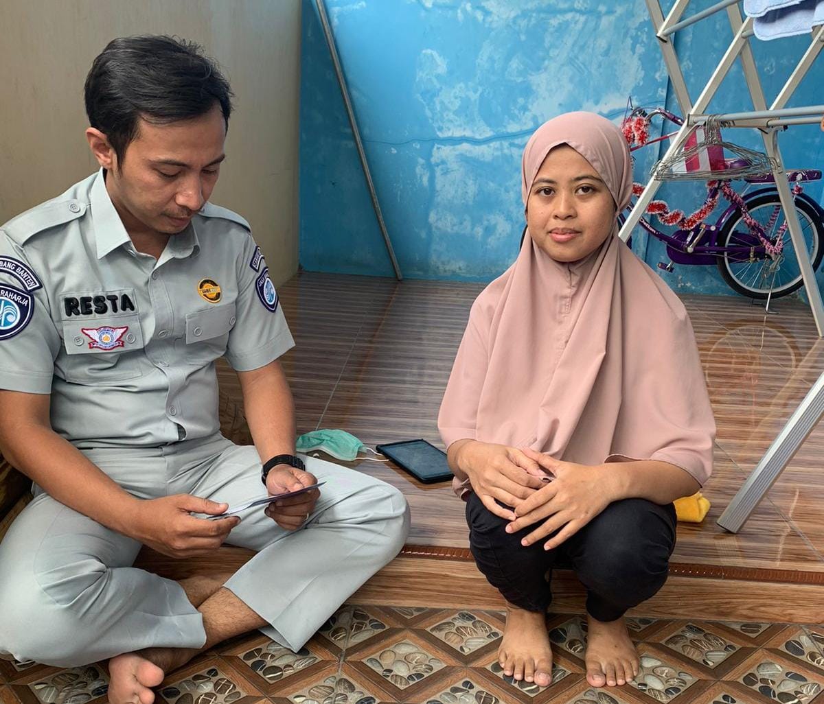Petugas mobile service KPJR Tigaraksa, Deni M resta bergerak cepat dalam penanganan korban kecelakaan dan langsung menuju kediaman ahli waris korban untuk memastikan keabsahan ahli waris yang beralamat di Kampung Eretan RT 03/01 Ds. Pasir Barat Kec. Jambe Kab. Tangerang dan diterima baik anak korban Ita Purnama Sari yang juga merupakan ahli waris yang sah untuk menerima santunan dari Jasa Raharja.