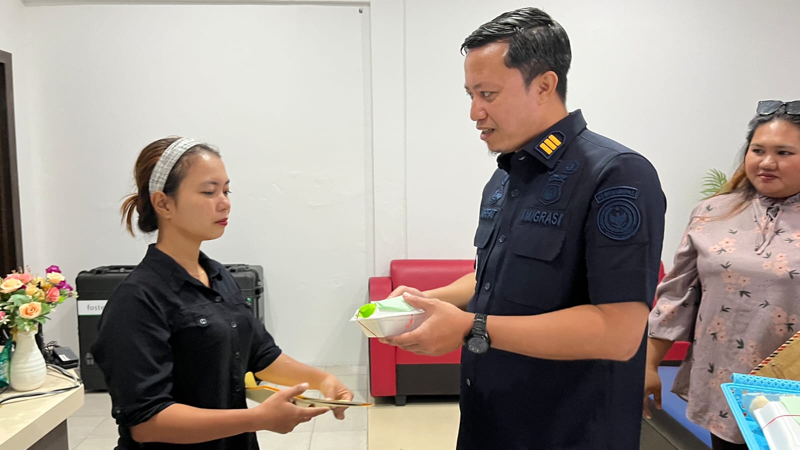 Dari pantauan, terlihat Pejabat Manajerial dan pegawai Kantor Imigrasi Kelas II TPI Tanjung Balai Karimun bersama-sama mendatangi para pemohon paspor untuk memberikan sarapan bergizi tersebut.