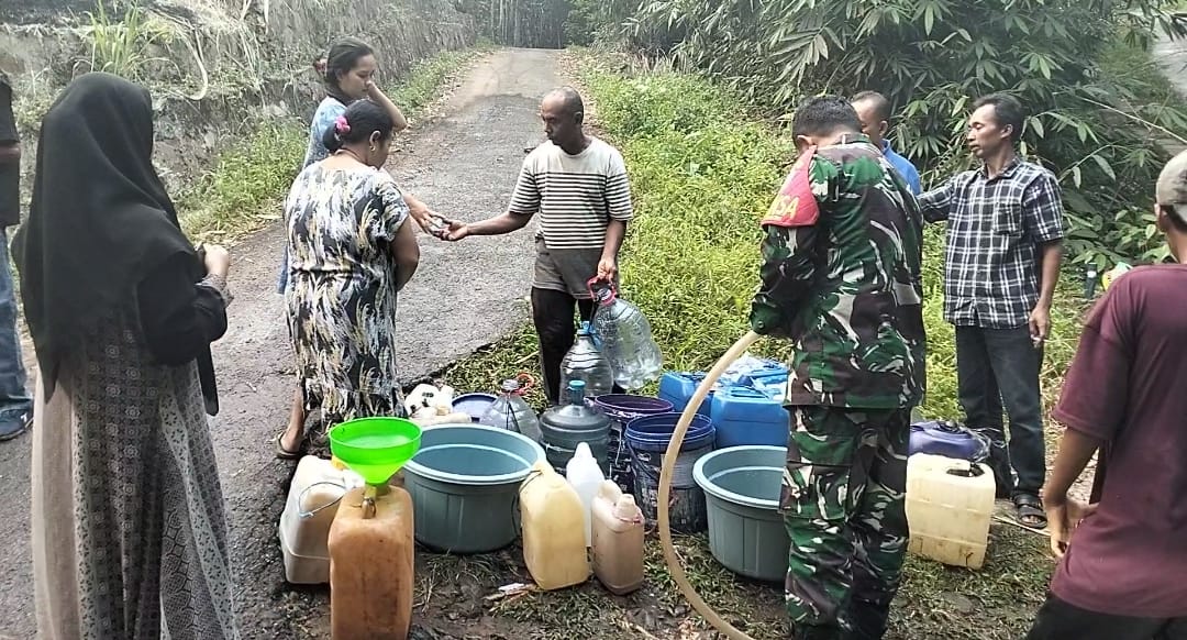 “Salah satu upaya yang dilakukan adalah mendata warga yang membutuhkan bantuan air bersih yang selanjutnya melakukan koordinasi dengan pemerintah desa atau kelurahan membuat surat permohonan bantuan air bersih kepada pemerintah kabupaten Pandeglang, seperti hari ini dilaksanakan penyaluran bantuan air bersih kepada warga kampung Mauk Mangkubumi Pandeglang,” Ucap Danramil