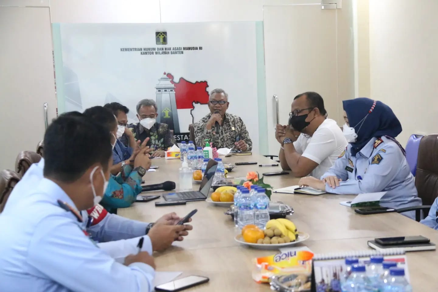 “Di Kanwil Kemenkumham Banten kita sedang melaksanakan proyek pembangunan di beberapa Unit Pelaksana Teknis yang saat ini sudah berjalan pada Lapas Kelas IIA Cilegon dan Lapas Kelas I Tangerang dan beberapa Lapas yang sedang melakukan persiapan pembangunan, dan kita mengharapkan pembangunan ini berjalan dengan akuntabel, mohon kepada jajaran BPKP untuk mendampingi kami dalam melaksanakan proses pembangunan” ujar Tejo Harwanto.