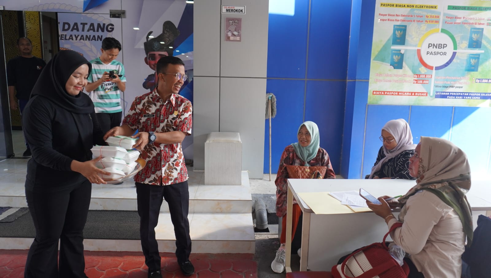 Dari pantauan, terlihat Kepala Kantor Imigrasi Kelas II TPI Tanjung Balai Karimun, Dwi Avandho Farid bersama Pejabat Manajerial dan pegawai Kantor Imigrasi Kelas II TPI Tanjung Balai Karimun bersama-sama mendatangi para pemohon paspor untuk memberikan sarapan bergizi tersebut. Jumat, 30 Januari 2026.
