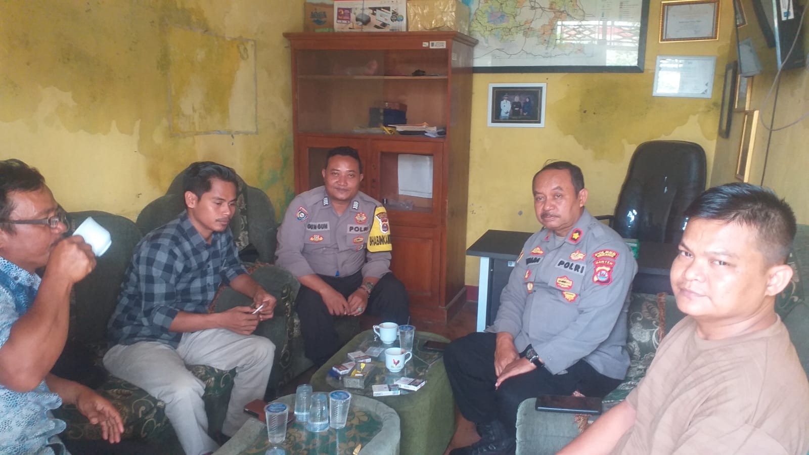 Kompol Suhara, S.H dan Bripka Gun Gun sebagai Bhabinkamtibmas desa sambang sekaligus silaturahmi dengan warga dan staff desa Pulo di kantor desa Pulo kecamatan Ciruas kabupaten Serang.