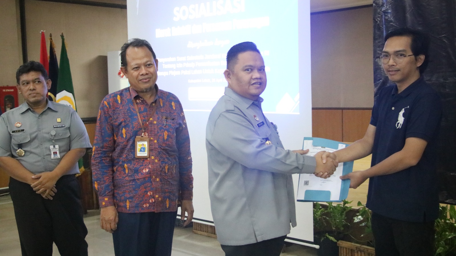 Sertifikat diberikan oleh Kepala Divisi Pelayanan Hukum Picesco Andika Tulus pada Sosialisasi Merek Kolektif dan Perseroan Perorangan yang diselenggarakan Kantor Wilayah Kementerian Hukum Banten di Aula Multatuli Kabupaten Lebak, Selasa (28/04/2026).
