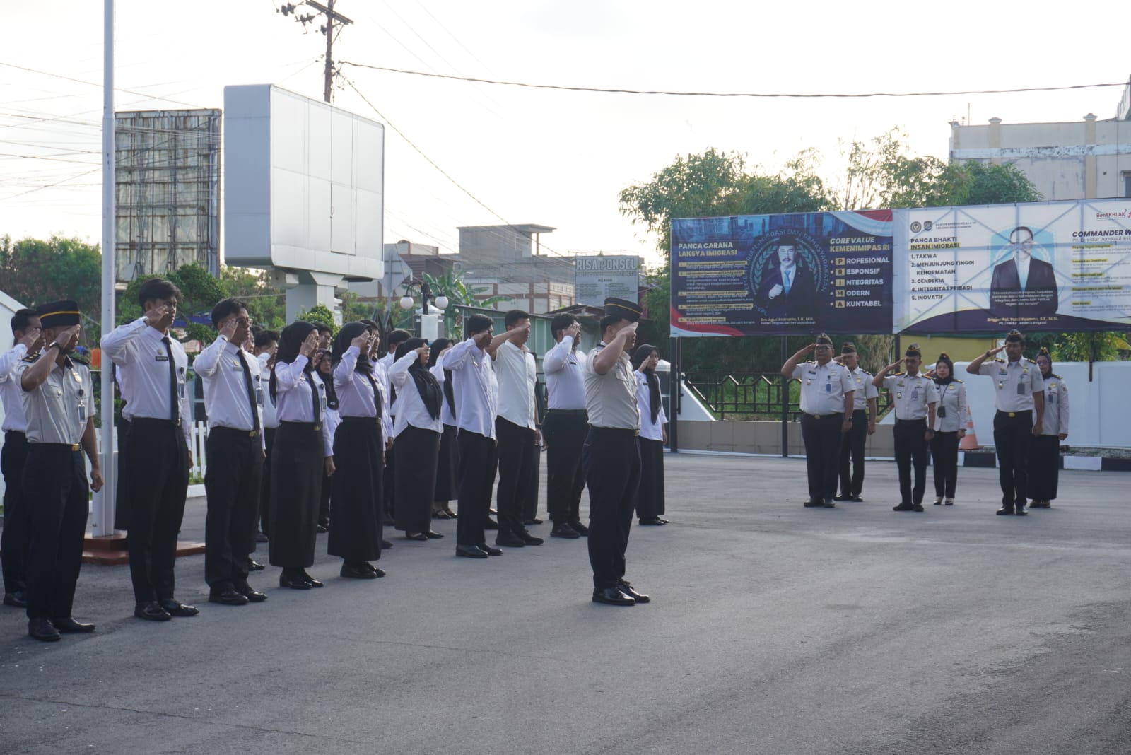 Kegiatan apel yang dilaksanakan setiap Senin pagi ini menjadi momentum untuk memperkuat kedisiplinan dan semangat kerja di lingkungan Kantor Imigrasi Kelas II TPI Tanjung Balai Karimun.