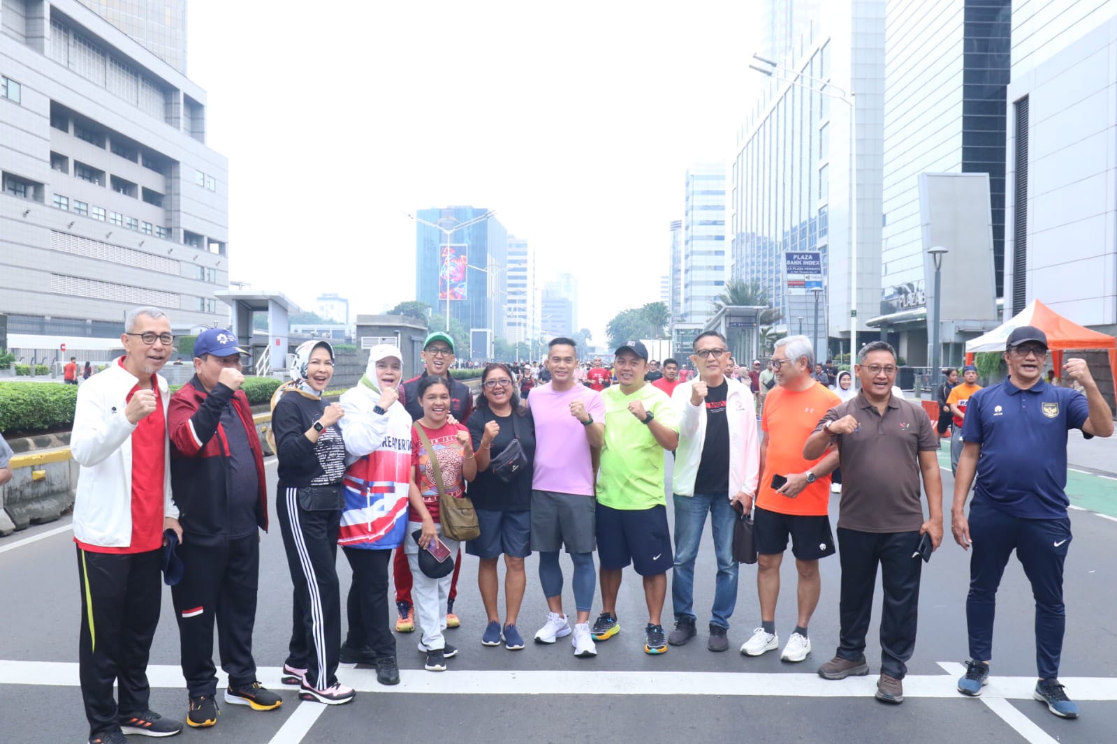Foto 2 : Anindya Bakrie & Menlu Retno Marsudi olahraga CFD di Jakarta, gelorakan Olimpiade 2024 Paris, Minggu 10 Maret 2024.