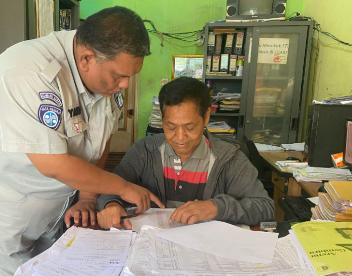 SERANG, (Persepsi.co.id) – Petugas Jasa Raharja Cabang Banten, Samsat Kota Serang Nuryanto Adiwibowo melakukan kunjungan Perusahaan PT Sri Maju Prima Kota Serang.