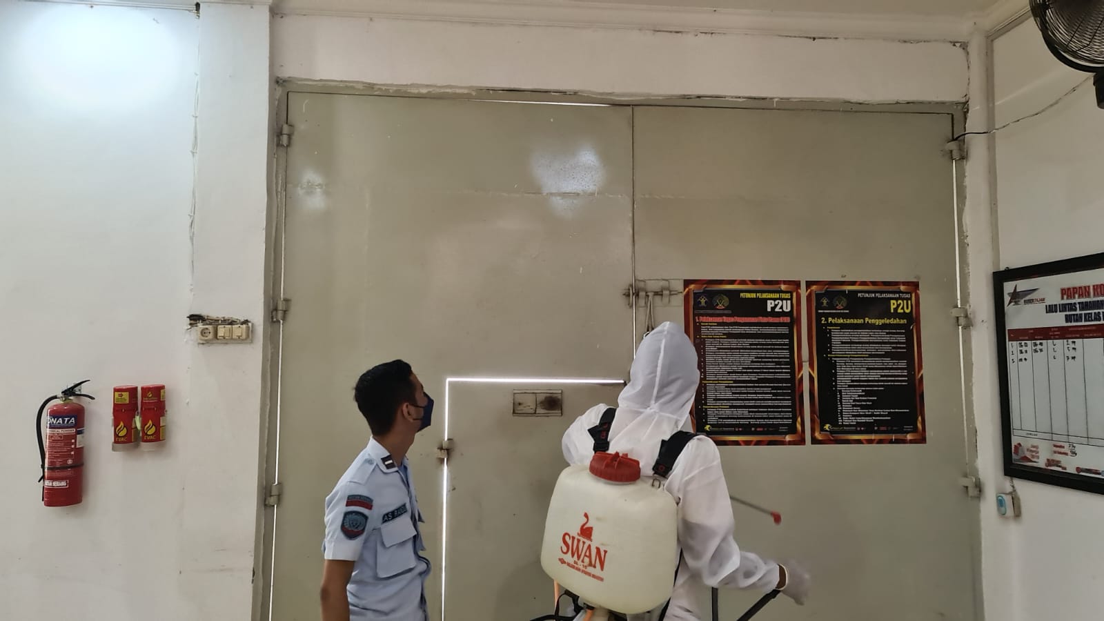 SERANG, (Persepsi.co.id) – Rumah Tahanan (Rutan) Kelas IIB Serang Semprotkan disinfektan pembasmi virus terutama khususnya COVID-19 di sekitaran area perkantoran, pelayanan public tempat masyarakat menerima layanan yang tersedia di Rutan Serang serta blok hunian yang sangat rentan apabila virus virus berbahaya memasuki Kawasan ini. Jumat (11/02/2022).