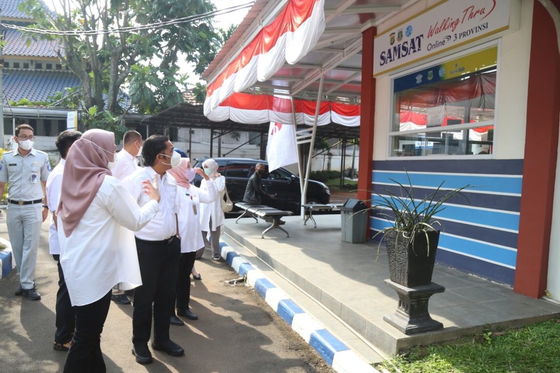 Tangerang,(persepsi.co.id) -Penjabat (Pj) Gubernur Banten Al Muktabar meninjau langsung pelayanan kepada masyarakat yang sedang melakukan pembayaran pajak maupun pelayanan yang lainnya di Unit Pelaksana Teknis (UPT) Sistem Administrasi Manunggal Satu Atap (Samsat) Serpong, Kota Tangerang Selatan, Rabu (21/9/2022).