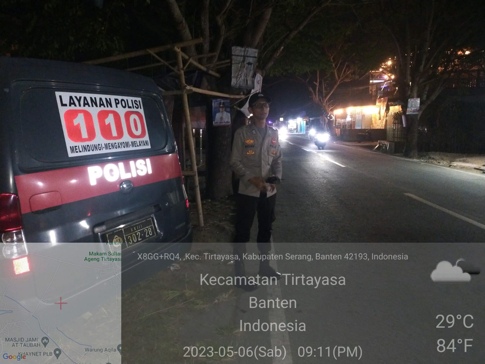 KRYD yang dilakukan personel Polsek Tirtayasa seperti di jalan raya Sultan Agung Tirtayasa, Sabtu malam, 06/05/2023.