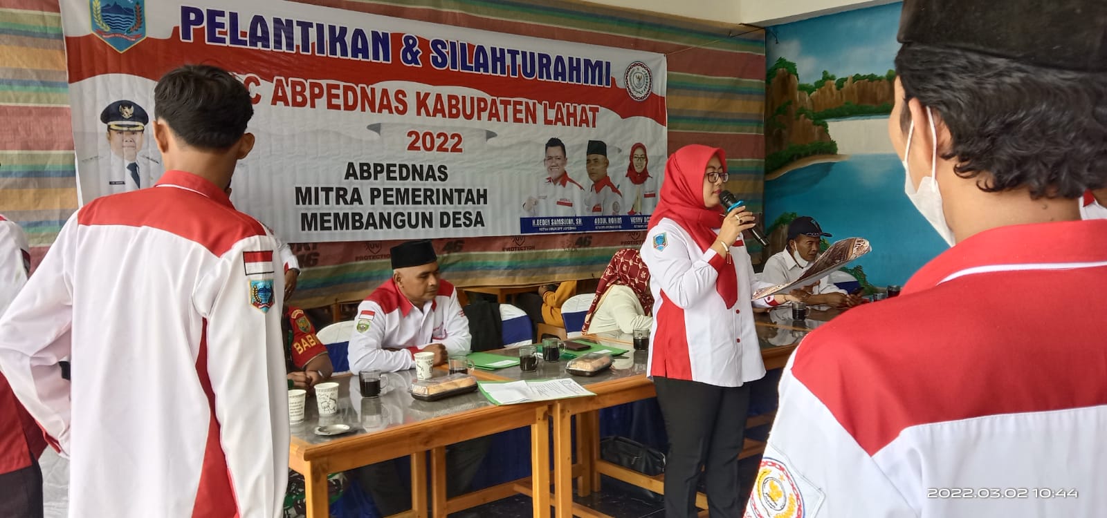 Pengurus Anak Cabang Asosiasi Badan Permusyawaratan Desa Nasional (PAC ABPEDNAS) Kabupaten Lahat, Sumatera Selatan gelar kegiatan Pelantikan dan Pengukuhan Pengurus Tingkat Kecamatan Dapil 4, yaitu Kecamatan Tanjung Sakti Pumi, Kecamatan Tanjung Sakti Pumu, Kecamatan Jarai, Kecamatan Muara Payang, Kecamatan Sukamerindu, Kecamatan Pajar Bulan, Kabupaten Lahat Sumatera Selatan,di Aula Agrowisata Sindang Panjang. Rabu, (2/3/2022)