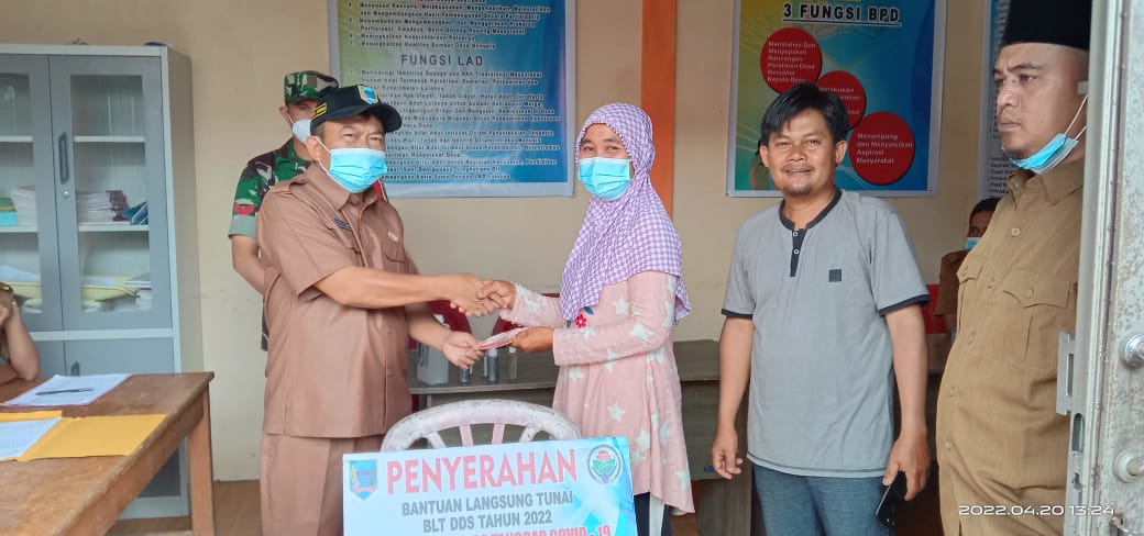 – Sel) Salurkan Bantuan Langsung Tunai ( BLT ) Dari anggaran Dana Desa Tahun 2022 dan Diberikan kepada 82 kepala keluarga (KK). yang bertempat di kantor desa pamah Salak, Rabu (20/4/2022).
