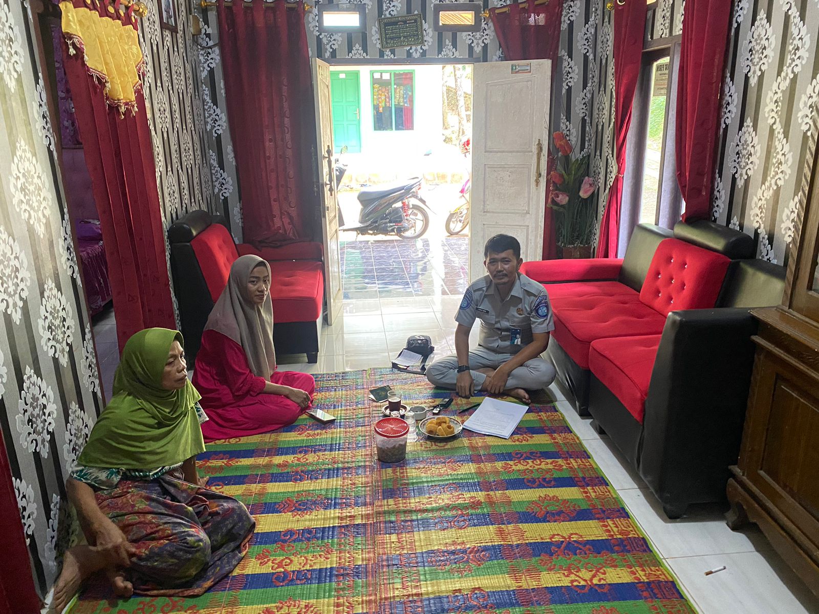 Kedatangan Petugas Jasa Raharja Samsat Pandeglang diterima langsung oleh ahli waris korban Riyo Gunawan yaitu Umiyati selaku istri korban dan ahli waris korban Sandri yaitu Muhemi selaku orang tua kandung korban.
