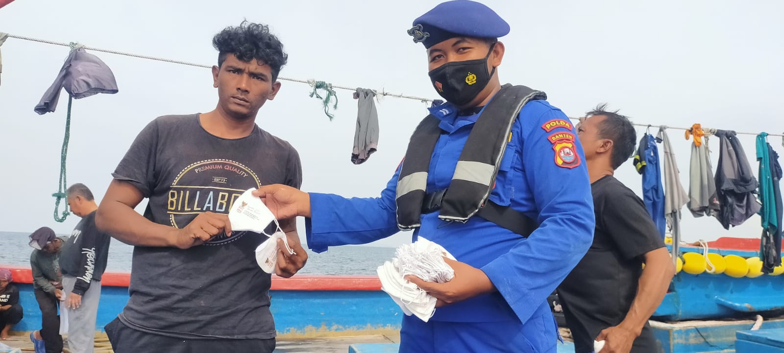 Serang, (persepsi.co.id) – Guna mengantisipasi gangguan Kamtibmas di wilayah perairan Polda Banten, personel Ditpolairud Polda Banten melakukan patroli dialogis serta bagikan masker di perairan Merak hingga Bojonegara.