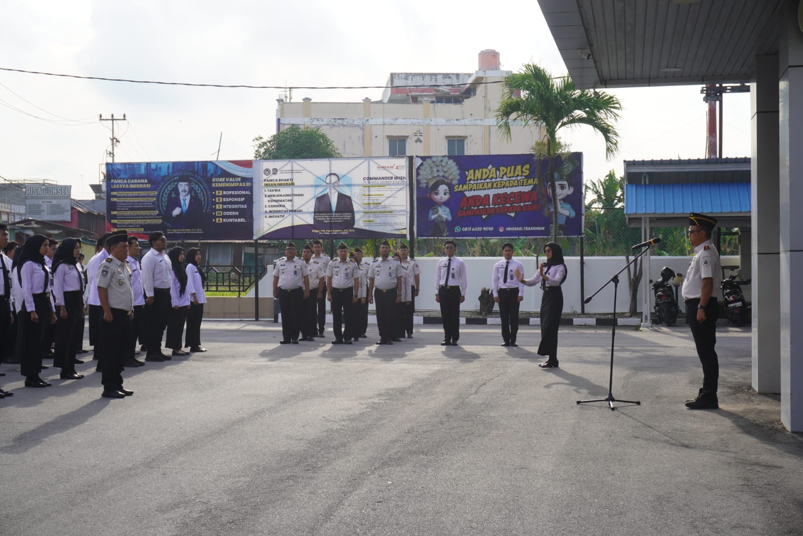 Bertindak selaku Pembina Aprl Pagi, Kepala Kantor Imigrasi Kelas II TPI Tanjung Balai Karimun, Dwi Avandho Farid. Kegiatan berlangsung dengan tertib dan khidmat, mencerminkan komitmen seluruh jajaran dalam menjalankan tugas dan tanggung jawab sebagai aparatur negara sebagai Penjaga Pintu Gerbang Negara.