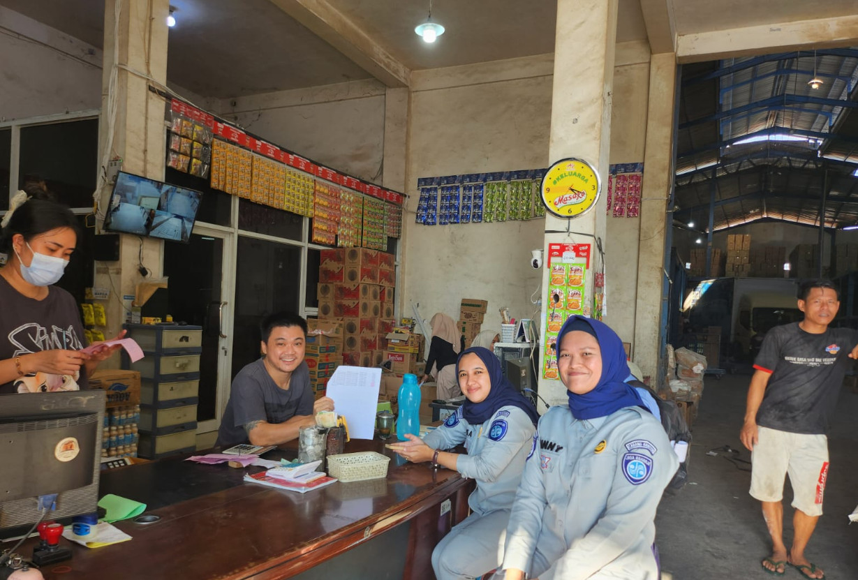 SERANG, (Persepsi.co.id) – Petugas Jasa Raharja Cabang Banten, Samsat Kota Serang Risa Puspita dan Vinny Nurina melakukan kunjungan ke Perusahaan PT Cahaya Matahari Perkasa wilayah kota Serang.