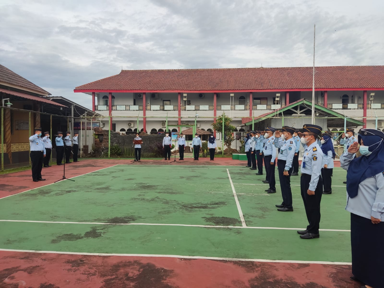 Melalui Apel Pagi, Kalapas Heri Kusrita selaku pembina apel menyampaikan amanat kepada seluruh pegawai untuk disiplin protokol kesehatan mengingat perkembangan virus Covid-19 Varian Omicron yang semakin meningkat.