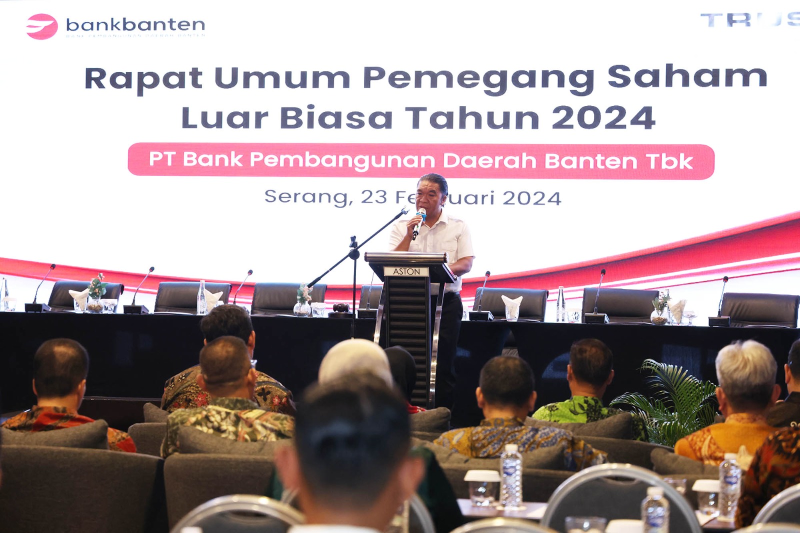 Banten, (persepsi.co.id) – Penjabat (Pj) Gubernur Banten Al Muktabar menghadiri Rapat Umum Pemegang Saham Luar Biasa (RUPS LB) PT Bank Pembangunan Daerah Banten (Perseroda) Tbk atau Bank Banten, Jumat (23/2/2024). Pada kesempatan itu, Al Muktabar mengapresiasi atas capaian kinerja jajaran direksi dan komisaris Bank Banten pada tahun 2023 yang mencatatkan laba bersih audited sebesar Rp26,59 miliar.