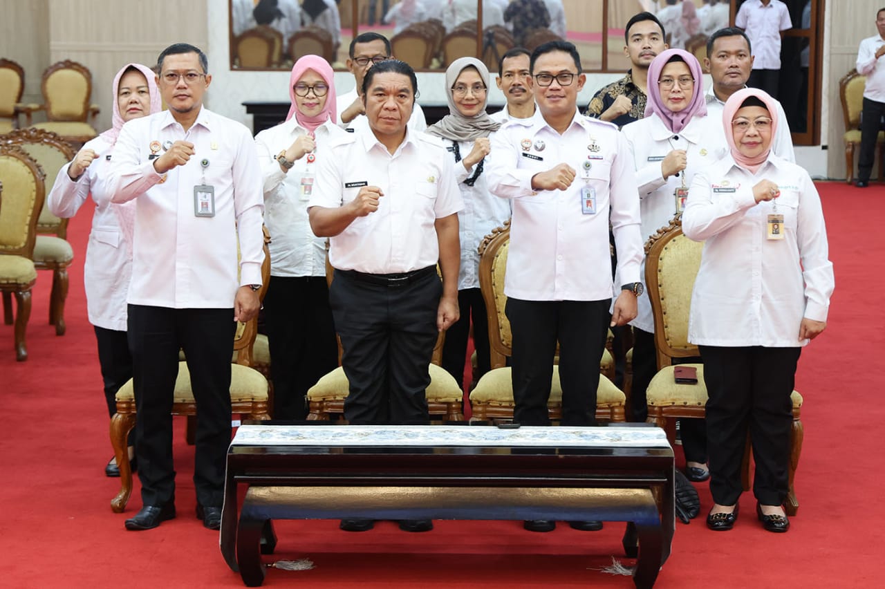 Banten,(persepsi.co.id)-Penjabat (Pj) Gubernur Banten Al Muktabar mengukuhkan Gugus Tugas Daerah Bisnis dan HAM Provinsi Banten Periode 2023 – 2025 di Pendopo Gubernur Banten KP3B Curug, Kota Serang, Rabu (3/4/2024). Pembentukan Gugus Tugas Daerah Bisnis dan HAM merupakan bentuk dari kewajiban negara dalam menghormati melindungi, memenuhi, memajukan, dan menegakkan hak asasi manusia.