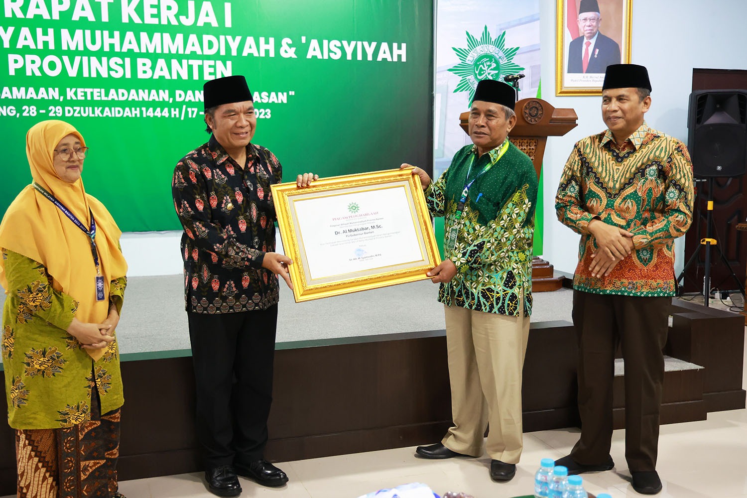 Serang, (persepsi.co.id) – Penjabat (Pj) Gubernur Banten Al Muktabar meraih penghargaan dari Pimpinan Wilayah (PW) Muhammadiyah Provinsi Banten. Penghargaan diserahkan Ketua PW Muhammadiyah Syamsudin kepada Al Muktabar pada Pembukaan Rapat Kerja (Raker) Muhammadiyah I PW Muhammadiyah dan Aisyiyah Provinsi Banten, Sabtu (17/6/2023) di Gedung Dakwah PW Muhammadiyah Provinsi Banten, Jl. Ki Ajurum, Cipocok Jaya, Kota Serang.