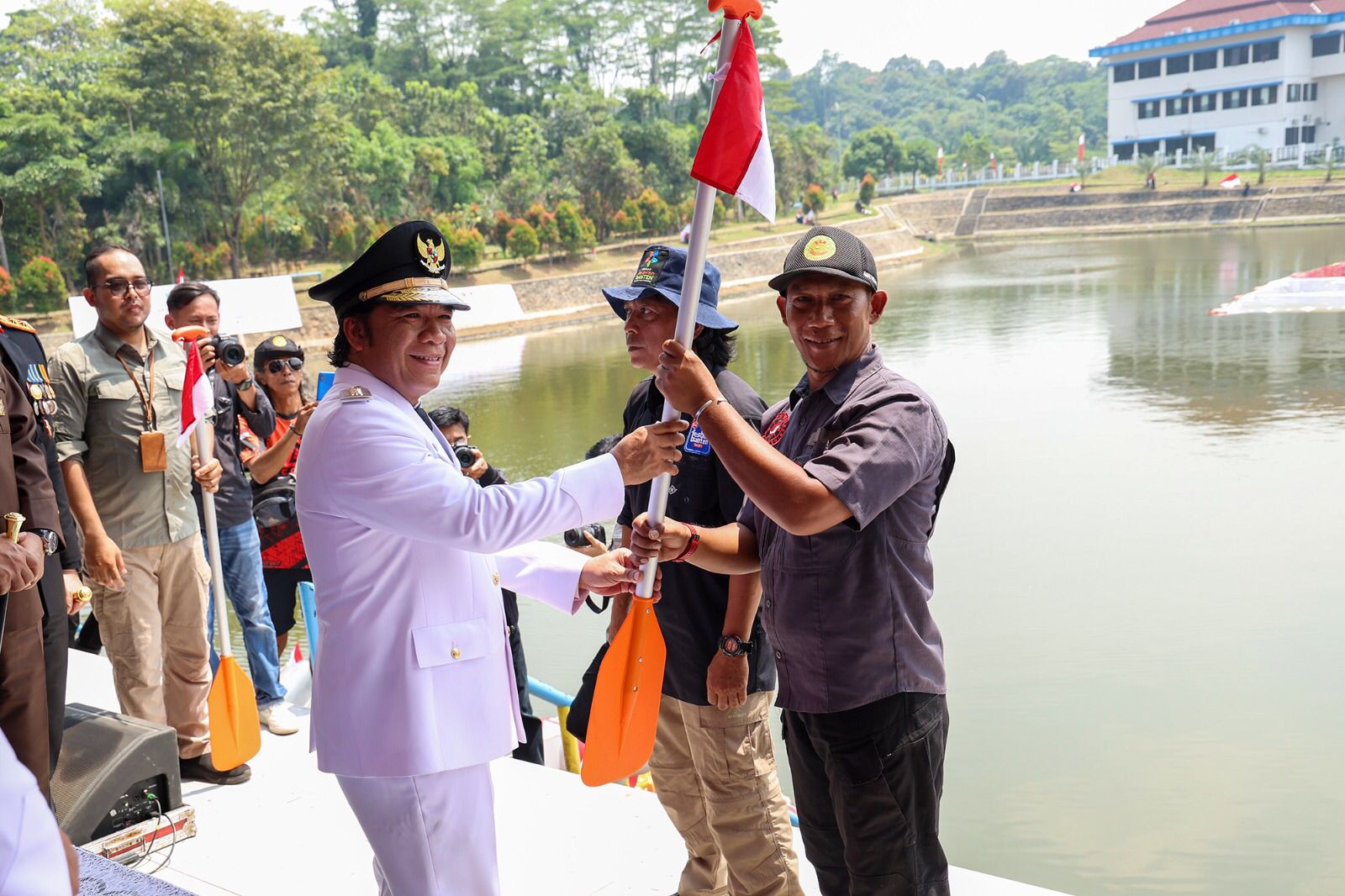 “Salah satunya dengan cara kegiatan ini, membentangkan Bendera Merah Putih raksasa di atas permukaan air,” ucapnya.