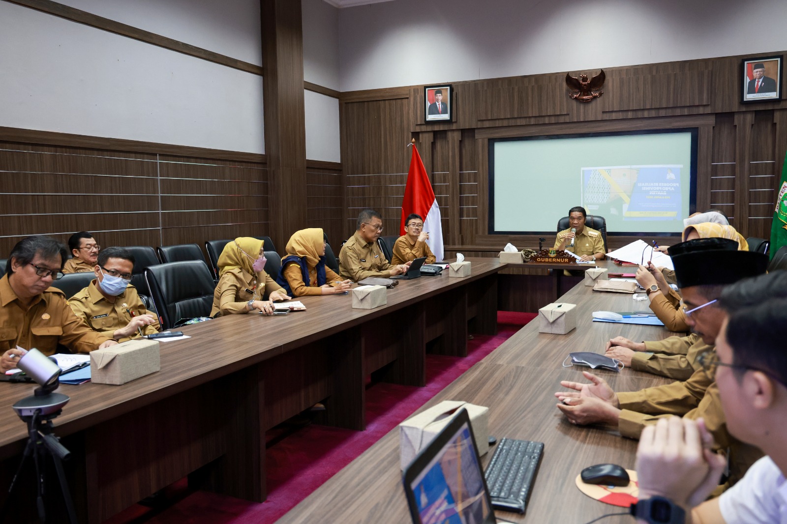 Serang,(persepsi.co.id)- Penjabat (Pj) Gubernur Banten Al Muktabar menggelar Rapat Terbatas persiapan menghadapi Hari Raya Idul Fitri 2023 terkait persiapan mudik dari logistik hingga transportasi.