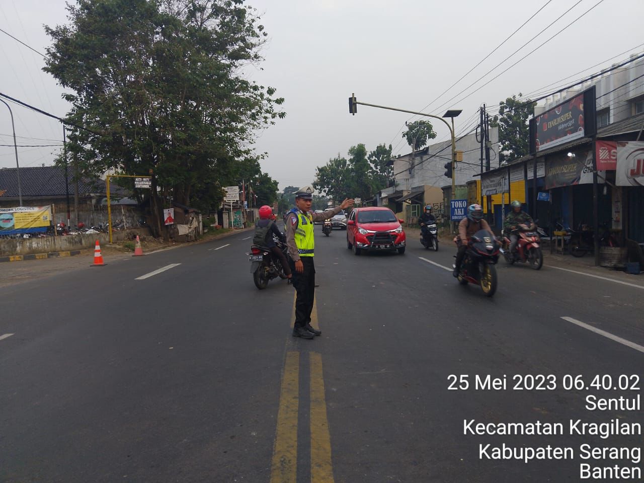 SERANG, (persepsi.co.id) – Polsek kragilan Polres Serang melaksanakan Strong Point pengaturan lalu lintas, penjagaan, dan patroli dalam rangka mencegah terjadinya kepadatan arus lalin, kemacetan, mengurai kemacetan, mencegah terjadinya laka lantas, dan tindak pidana C3 pada Pagi hari bertempat di Depan Mako Polsek Kragilan dan Pertigan sentul Kec. Kragilan Kab. Serang Kamis (25/05/2023) pukul 06.30 WIB.