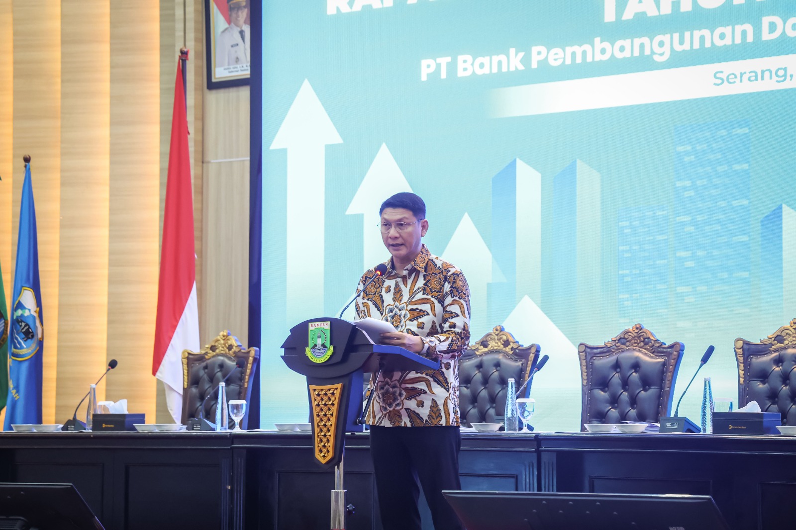 Serang,(persepsi.co.id)- Sekretaris Daerah (Sekda) Deden Apriandi menegaskan Pemerintah Provinsi (Pemprov) Banten mendukung berbagai langkah strategis yang dilakukan PT Bank Pembangunan Daerah Banten (Perseroda) Tbk dalam memperkuat tata kelola perusahaan. Hal itu disampaikan saat menghadiri Rapat Umum Pemegang Saham (RUPS) Tahunan Bank Banten di Pendopo Gubernur Banten, Kota Serang, Selasa (28/4/2026).