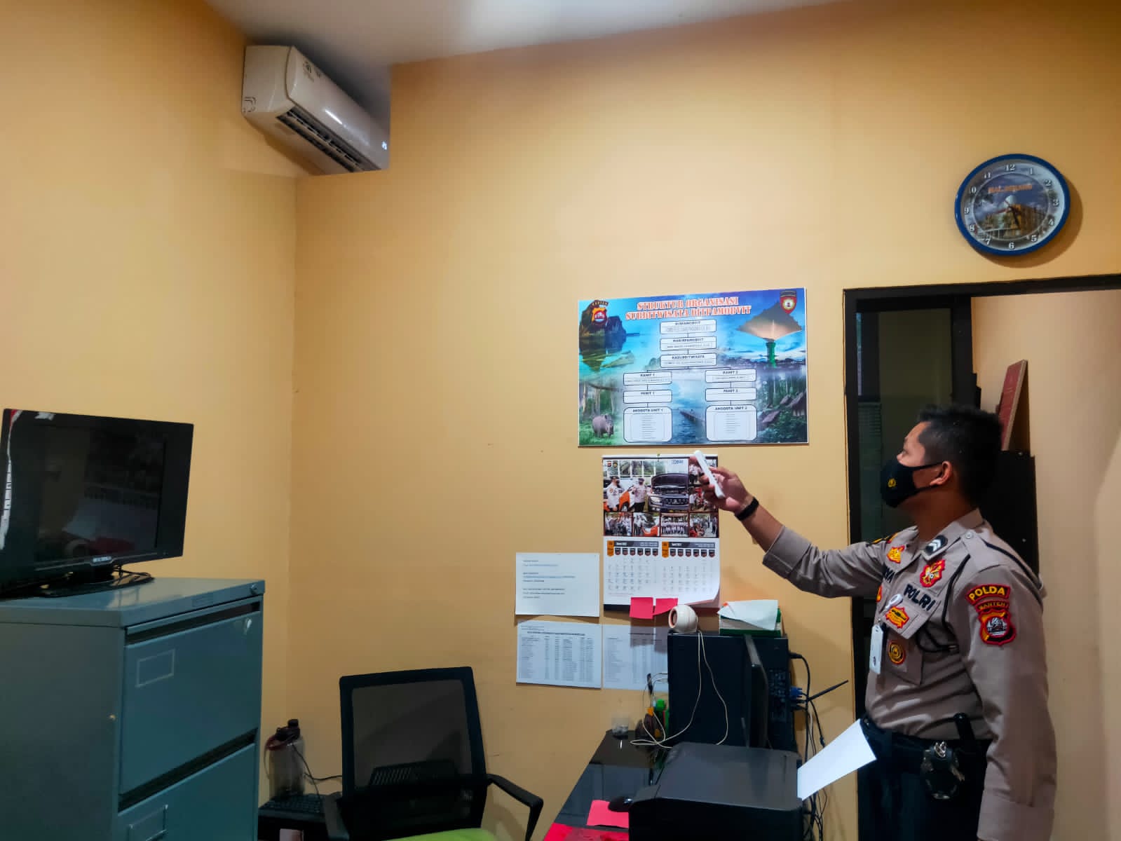 Personel piket Mako Ditpamobvit bertugas memastikan seluruh ruangan kantor dan gudang dalam kondisi aman.